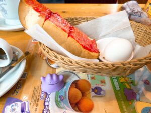 +ブレンドコーヒーのモーニング(パン半分+ゆで卵)