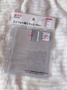 セリアのB7サイズ 3つ穴バインダーとミニフォト用リフィルです。